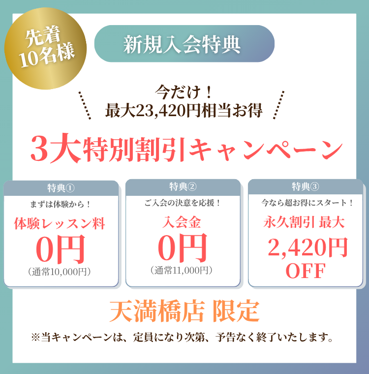 まずは天満橋店の初回体験で